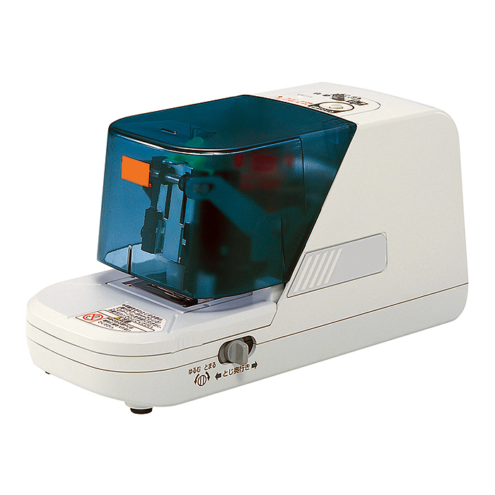 ■とじ位置が自在 ●とじ位置がはっきり見えるクリアカバー 本体カバーに視認性に優れたクリアカバーを採用。 ●とじ位置を自由に調整 奥行き7~18mm。(手動ボタンで約3mmの奥行き可能) ![]() ●コーナーへのホッチキスどめが可能 用紙の角から12~26mmの奥行きでとじることができます。 ![]() ●針交換お知らせセンサー搭載 LEDランプが赤く点灯し、針の交換時期をお知らせします。 ![]() ●針のカートリッジ交換がワンタッチ 針の装填はカートリッジを差し込むだけでOK。 ![]() ■仕様
