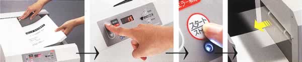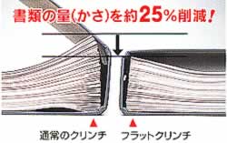 | ■基本性能 ●綴じ枚数:2~30枚から選択 ●PPC用紙:上質紙(アート紙・コート紙除く)、更紙が使えます ●坪量57~80g/m2が使えます ●A4サイズが使えます ※複数種類の紙が混在した冊子は作れません ■処理速度:5枚×10部 約60秒 ※綴じ枚数によって処理速度は異なります ■綴じ位置:2種類の綴じ位置から選択 ![]() ■処理(積載)枚数:300枚 例:2枚綴じなら150部、30枚綴じなら10部 ■重送検知センサーで、とじミスを防止 用紙が2枚以上重なって送られた場合に、エラーを検知して綴じる前に停止します ![]() ■均一できれいな仕上がり 機械内部で用紙をそろえて同じ位置で綴じていきます ■綴じ形状は「フラットクリンチ」 綴じ裏が平らに打ち曲げられ、綴じた書類を重ねてもかさばりません! ![]() ■オフィスで印刷した用紙が使える コピー機・レーザプリンタ・デジタル印刷機等で印刷された用紙が綴じられます ※カタログ等の印刷物(アート紙・コート紙)は使えません。 ■使い方は簡単 (1)ページ順に印刷した用紙をセットする (2)綴じる枚数と、綴じる位置えお決める(※操作パネルで簡単設定) (3)スタートボタンを押す (4)動作を開始します ![]() ■仕様