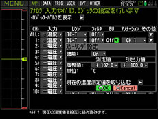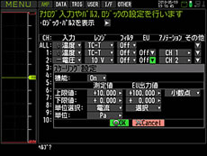 ●PCでの拡張 パソコンで付属のPCアプリケーション(GL220_820-APS)を使用すると、本体を最大10台、チャネル数を最大500chまで拡張し、計測することができます。 ●便利なスケーリング機能を搭載 スケーリング機能を使用すれば、各種センサーからの電圧信号出力にて計測を行う場合に、元の物理量でデータ収録を行うことができます。 ・電圧時:変換したい単位については一般的なものは登録されていますので、設定が容易です。登録にない単位も作成することが可能です。 ![]() ・温度時:各種機器に装着されている温度表示器などの値に合わせる際にも本機能を使用することで可能です。 ![]() ●チャネル間演算機能搭載 リアルタイムでチャネル間演算が可能です。チャネル同士の四則演算を実行できます。演算結果は、そのまま測定データ値として保存されます。(本体での測定時のみ)。 <USBメモリと内蔵フラッシュメモリで安心収録> ●最高10msのサンプリング速度に対応 電圧測定時のサンプリング速度アップを実現。 チャネル数を絞ることにより、最高10msでのデータ収録が可能です。