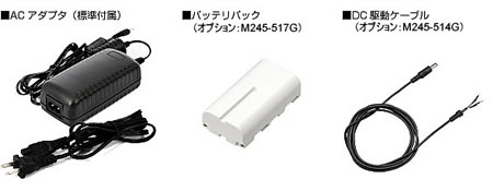 ※2 本体電源ON、OFFのいずれも充電可能。 ※3 DC駆動にはDC駆動ケーブル(M245-514G:オプション)が必要です ■本体仕様