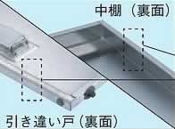板厚:1.0mm・間口1500mm・1800mmの中板は、左右2分割です。 |