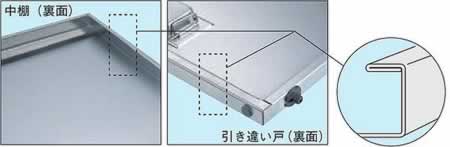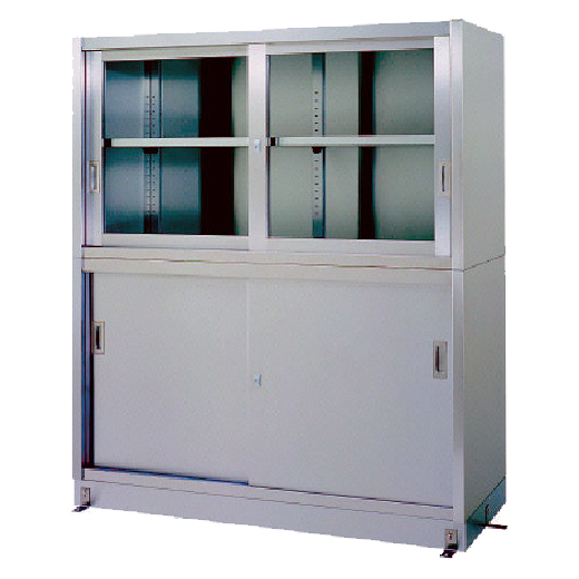 | ■特長 ●上ガラス戸、下ステンレス戸のステンレス保管庫です。 ●耐震固定金具(6個)付です。※耐震固定金具用ネジはお客様にてご用意願います。 ![]() ●アジャスター付ベースによりレベル調整が可能です。 ●中棚は30mmピッチにて上下可変式です。 ●中棚上下各1段付属 ※間口1500・1800の中棚は左右二分割式棚になります。 ●棚板および扉はヘミング加工(折り返し)により、安全性、強度面に優れています。 ![]() ●アジャスト脚仕様もあります。お問い合わせ下さい。 ![]() ■タイプ