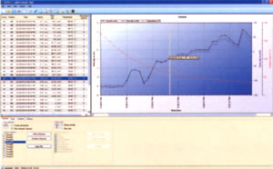 保存されたデータをPCに取り込むことができます。 計測データはテーブルやグラフ表示にすることができます。 また「XLS」や「CSV」方式にて保存することもできます。 M261-NTSにはPC接続用のUSBインタフェイスが装備されています。 言語は英語とドイツ語のみになります。