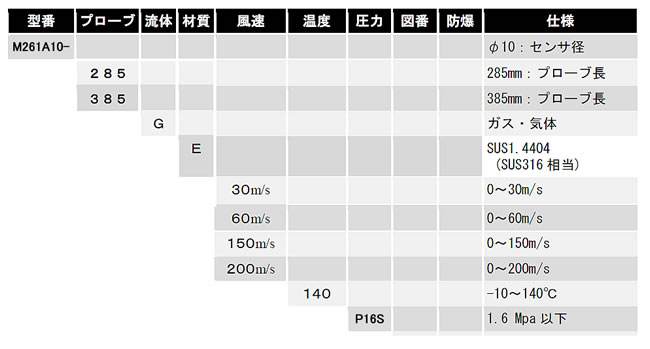 サーマル式風速センサー 品番 M261A10-285GE-30-140P16S 価格は下記をご覧下さい |