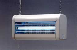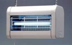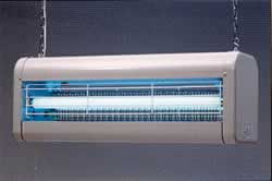 蠅や飛翔害虫を近紫外線を発生する誘虫ランプで誘き寄せ、高電圧で瞬間時に殺虫できる屋内用電撃殺虫機です。