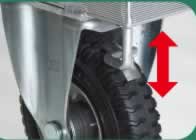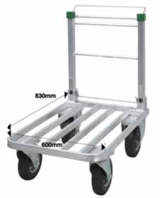 全機種にハンドブレーキを装備。 ハンドルを握ってスタート、ハンドルを放せば自動でブレーキ。 長年の実績を誇るアルミブリッジと同じアルミ合金、超ジュラルミン材料(7000番シリーズ)を使用。 オールアルミ製なので、超軽量、高耐荷重、高耐久性。 250キロから350キロまでの荷物を積載可能。 直径100ミリから220ミリまでの各種車輪をラインナップ。 |