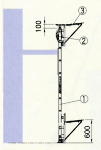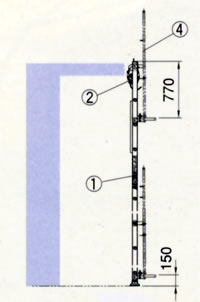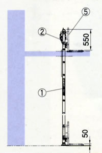 ※はしごの長さは延長可能です。ご相談ください。 ※4mを越える場合、下部支柱が付きます。また、90°で使用する場合は中間で1ヵ所固定してください。 操作コードは10m付きます。 ※安全装置/過巻リミットスイッチ |