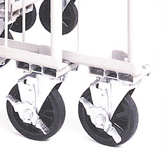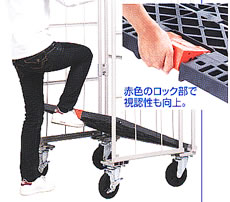 | ■簡単、使いやすい、作業効率が良い 手はもちろん、足でも簡単にワンタッチでロックを解除。 ![]() ■鉄芯入り樹脂ベース ベース面は、500kgの荷重に対応する樹脂とスチールのコンビネーション。 ![]() ■樹脂性カラー 右パネルのジョイント部には樹脂製カラーを装着。 動きがスムーズで、金属音も気になりません。 ![]() ■独自の車輪構造 折り畳んで重ねた場合、車輪同士が干渉しない独自の構造。 複数台での移動も容易です。 ![]() ■寸法図/車輪タイプ ![]() ![]()