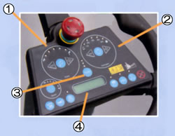 | ■特長 ●集中操作パネル ・ハンドル中央部にすべてのスイッチを集中配置、座ったまま簡単に操作できます。 ・1つのスイッチでバキュームとブラシが同時にスタート。