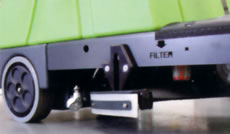 ●カーブスクイージー ブラシの直後にスクイジーを設置することで旋回時の吸い残しがありません。 ![]() ●ブラシは自動着脱式 手を汚さずスイッチひとつで簡単にブラシを着脱できます。 ![]() ●シールドバッテリーを標準装備 メンテナンスフリーなので面倒なバッテリー液の管理が不要です。 ![]() ●軽量でコンパクトなボディ 小型エレベーターに入るので移動もラクラク。 狭い通路でも無理なく走行、洗浄、旋回ができます。 ![]() ●排気用HEPAフィルター搭載で洗浄な空気を排出。 ●充電器搭載なので、どこでも充電できます。 ●回収タンクの開口部が広く、作業後のメンテナンスが容易。 ■標準付属品 ●バッテリー(内蔵)……1組(2個) ●バッテリー充電器(内蔵)……1式 ●ナイロンブラシまたはパッド台……1個※ ※ご注文時にどちらかをご指定下さい。 ■仕様