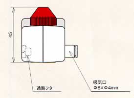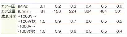 ■デイジーチェーンで電源供給したり、警報信号を外部出力できる6極コネクタ。![]() ■高圧異常時にはカバーが赤色に点灯し異常を知らせます。 通常通電時は青色に点灯します。 ![]() ■設備への固定に便利なネジ穴 (本体3面) ![]() ■φ6mmチューブのエアー供給口。 配管位置を変えられます。 ![]() ■3種類の交換用ノズルを付属。 ![]() ■測定データ