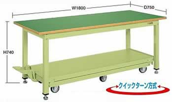 静から動へ。 固定式作業台をワンタッチで移動式に。 高さ(座り作業用)H740mm キャスター100φ 移動時:250kg/昇降は250kgまで可能 |