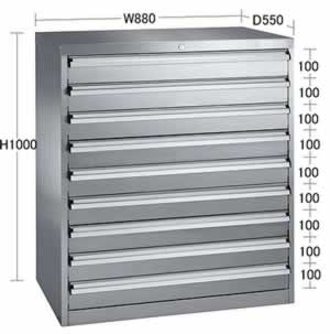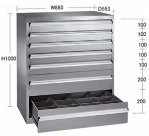 重量物の保管に最適。 3重安全装置で地震対策も万全です。 本体・引出し(レール除く):SUS430 取手:アルミ レール:スチールメッキ |