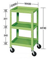 堅牢、安全、美観、三拍子揃った新しいワゴンです。 人に優しい棚板形状です。 |