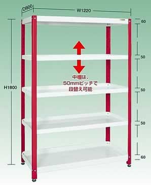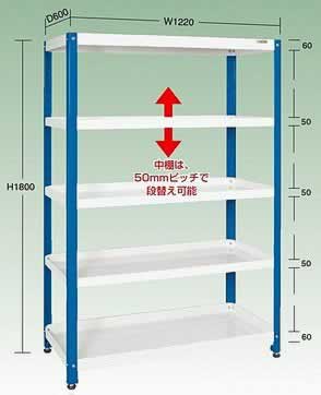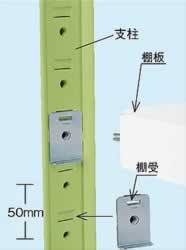 ■支柱突き合わせ方式![]() ■棚板は皿型・フラット型変更可能 補強入りでも、皿型、フラット型どちらのタイプも組替えできます。 ![]() ■棚板は50mmピッチで変更可能 ![]() ■棚板は棚受けに乗せてビス止めするだけで簡単に取り付け、組み替えができます。 また、ボルトと棚受けの2つで棚を支えていますので落下の心配が無く、より安全にご使用になれます。 ![]() ■床面とのレベル調整ができ、容易に水平が出せます。 ネジ径:M12P=1.75 ![]() ■タイプ