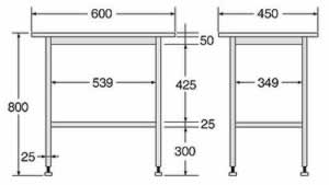 ●コンパクトで安価な作業台です。 ●高さは一般的な作業台・シンクと同じ800mm。補助テーブルとして最適です。 ●床から下棚までの寸法は約300mm。 水回りでも安心してお使いいただけます。 |