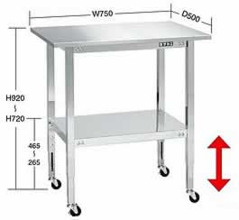 | ステンレスワゴン作業台(高さ調整)/品番 M350SUSTFW4-70TS |