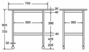 ●高さ720〜920mmの範囲で任意の高さに調整可能 ●クリーンルーム等の補助テーブルに最適です ●キャスター付で手軽に移動できます。 ●作業台用の天板で安定した作業ができます。 ●棚板(BA仕上)付で小物等を置けます。 |