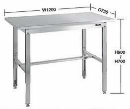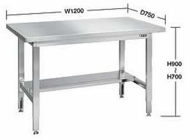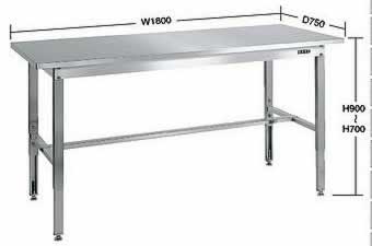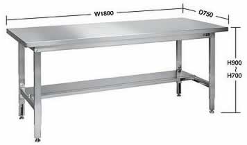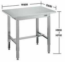 本体は角パイプ(構造用鋼管)を使用しているため非常に堅牢でしかもホコリが溜まりません。 作業に最適な高さに調整してご利用下さい。 ステンレス高さ調整作業台:H700~H900mm |