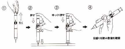 | ■特長 ●ウレタン防水材等の簡易膜厚測定ペン、針を使った簡易膜厚測定器具です。 ●針を押し込み、側面の目盛りで膜厚を確認。 ■針の動き ![]() ■確認 ![]() ■注意 本品は現場での簡易測定用として作られており、ミリ単位の測定となります。 針先を破損させますと測定できません。破損した針を交換することができます。 トップコート塗布前に作業してください。測定膜厚にはシートやマットの厚みを含んでください。 ■仕様