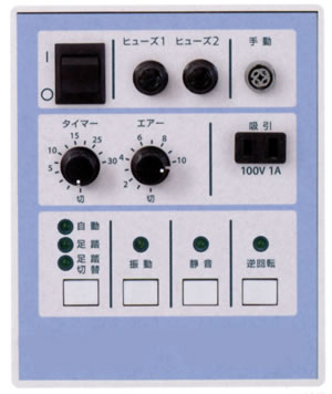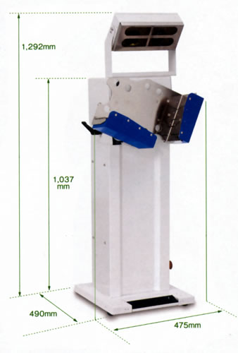 | ■特長 ●紙質を選ばず軽快な紙さばきを実現 よりパワフルなブロアーを採用し、強力なエアーでスムーズな紙さばきを実現します。 さらに、紙受部の振動力を均一化するために紙受部の補強、防振ゴム硬度の見直しを実施し、紙揃え性能を向上しました。 また、付属の押さえ板を使えば、薄く腰のないチラシもばらけることなくさばけます。 ![]() ●エアーと振動を自動的にON/OFF 紙受部に設置した反射センサが、丁合チラシ、丁合前チラシなどのセットを感知して、 エアーと振動のスタートおよびストップを自動的に行います。 ![]() ●タイマー調節で振動とエアーを自動OFF タイマー調節機能により、一定時間経過後、振動とエアーを自動的にOFFする事ができます。 又、エアー量も調整できるため、紙質に合わせて適度な風量で作業が行えます。 ![]() ●静音モードと逆回転モードを搭載 近隣への音漏れに配慮してエアーを抑制する静音モードと、 紙受台が回転する方向を変えて紙の浮き上がりを抑える逆回転モードの2つの運転モードが選べます。 ![]() ●手袋をしたままでも操作可能な大型のボタン式スイッチを採用した操作パネル。 ![]() ■オプション ●エアーノズル…画期的なエアーさばきノズル 本体に接続して紙の上からのエアーさばきを可能にする、 ホース付きのエアーノズル(オプション)をご用意しました。 ![]() ●吸引装置…作業の安全に配慮した吸引装置 エアーを吹き込む際に、作業する方の前面へパウダーや紙塵が飛散して、 これらを吸引してしまうことを軽減するために、ヘッド上部に吸引装置(オプション)を取付可能。 二連吸引ファンにより、エアーの流れをヘッドの後側に逃がします。 ![]() ●手動スイッチ・移動防止ストッパー…足踏みと手動でカンタン操作 エアーと振動のON/OFFは反射センサによる自動操作のほか、タイマーの設置や足踏みスイッチ、 そして手動スイッチ(オプション)を使って操作することも可能です。 斜めにカットされた形状の足踏みスイッチは、 踏み込み位置が低く踏みやすいので合理的な運転スタイルを実現します。 足踏み時の機械移動を防止する移動防止ストッパー(オプション)もラインナップ。 ![]() ■寸法 設置場所を選ばないスマートボディ。 ![]() ■仕様
