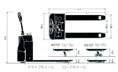 電動走行パレットトラック 品番 M37CP-13J 価格は下記をご覧ください。 |