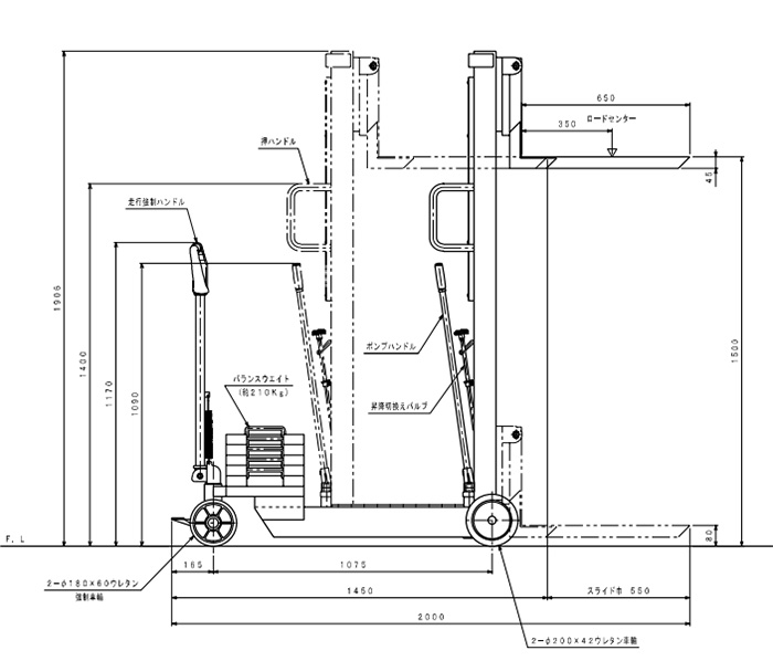 リーチフォーク手動リフト 品番 M37L-H350-15RK |