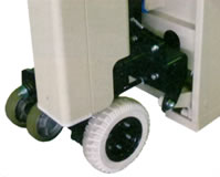 | ■特長 ●四輪接地により荷物積載時の安定感がUPしました。 ●FETチョッパー方式(電子制御無段変速)採用により。 走行スピードが自由自在。スムーズな走りを実現しました。 ●駆動部は、床面にやさしいノーパンクタイヤ採用によるソフトな走行感。 ●操作は簡単。走行スイッチを操作するだけでゆっくりと発進します。 ●作業者の安全を確保する為のセーフティースイッチ付。 ●非常停止スイッチ付。