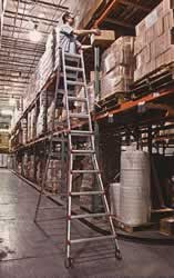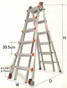 強力(135キロ使用荷重)タイプ。 脚立時最上段高さは3.19m、最長はしごは6.98m。 |