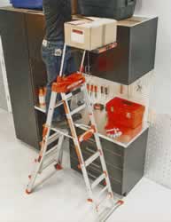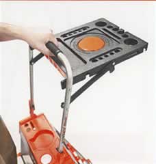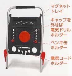 ■ワイドステップ(天板より2段目に装備)![]() ■手摺、道具トレイ”エアーデッキ” ![]() ■エアーデッキトレイ ![]() ■安定性に優れたワイドベース ![]() ■使用方法