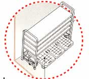 | ■省力 下段にミニキャリアを使用すると重量品の出し入れが楽に出来ます。 ![]() ■棚板取り付け自由自在 棚板の取り付けが自由自在、簡単にできます。 棚板間隔の設定は3cm。サビに強いステンレスとプラスチック製です。 ![]() ■クリンリネス対策 冷蔵庫の床と壁を毎日清掃できます。悪臭・雑菌発生の防止に。 ![]() ■足踏み式ストッパー付 足踏式ストッパーで床面にピッタリフィットできます。 柔構造でガタツキません。キャスター付なので清掃時の移動も可能です。 ![]() ■タイプ/寸法図 (天板付・中間棚はすべて別売です)