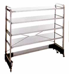 前面開放型で、カート挿入ができ、省力かつ機能的に使用できます。 | ステンレス移動キャスターラック 品番 M385M-10N 価格は下記をご覧下さい |