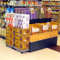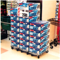 ビールなどのケースにぴったりサイズ、 日付管理や陳列作業も簡単に行えます。 また、何台でも横連結が可能な構造で サイド陳列・島陳列などに最適なカートです。 |