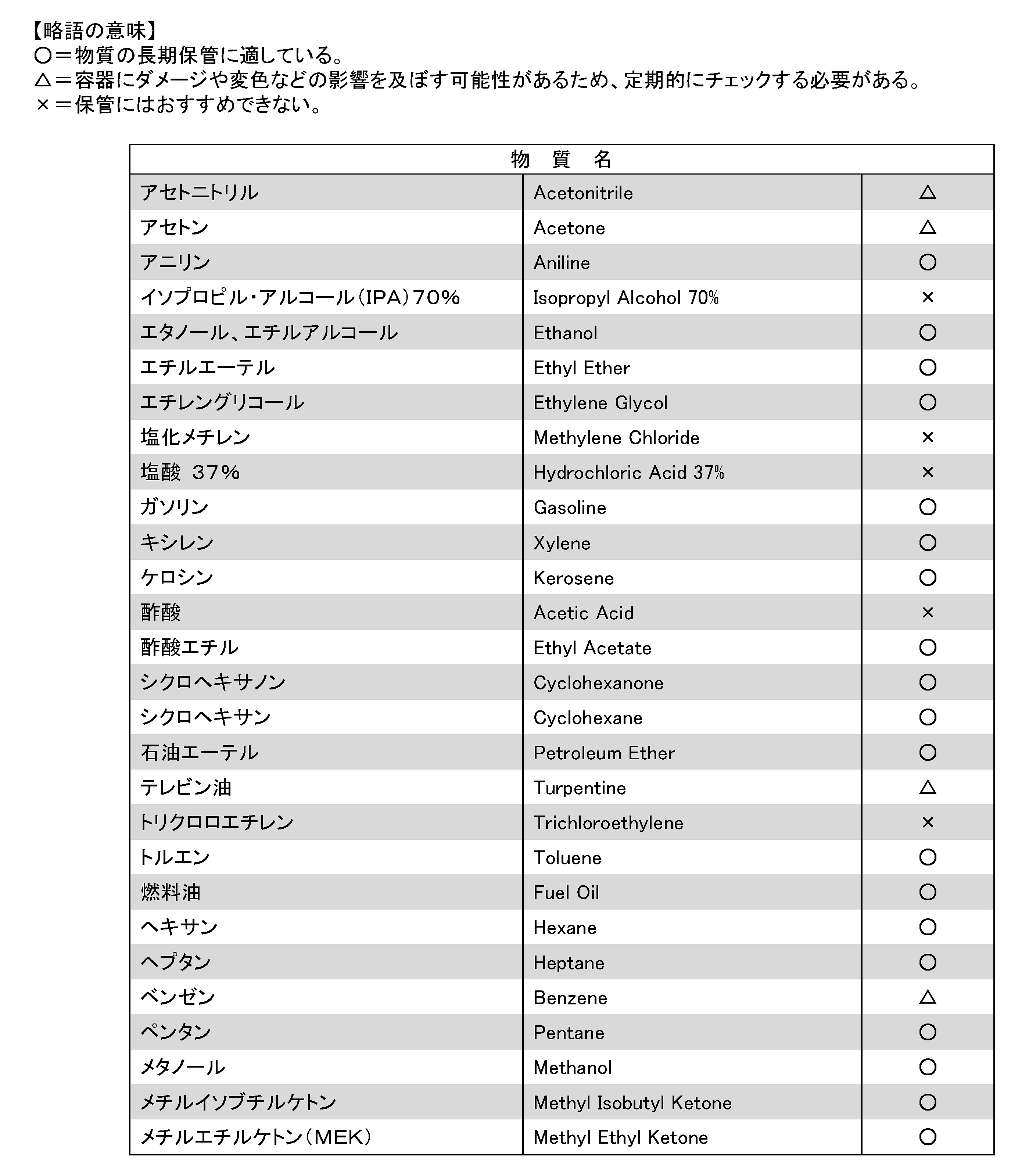 液体名を記入するスペースを設けてあります。液体の管理に便利です。