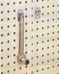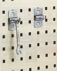 ■オプション ●フックの取り付け方 ハンガーボードの穴にフックのツメを差し込み、おし下げて下さい。 ※フックのみで工具は付属しません。(お持ちの工具を掛けて下さい。)