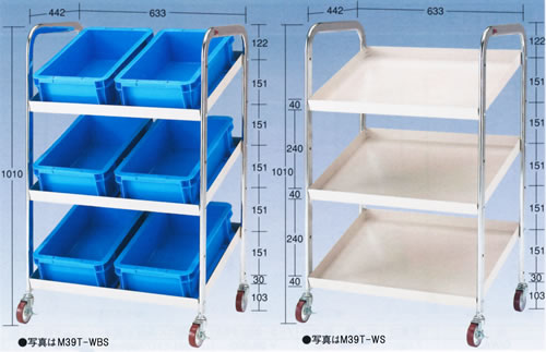 | 部品コンテナ棚傾斜ワゴン台車/品番 M39T-WBS |