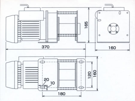 | ■特長 ●価格を追求したシンプルな構造の電動ウインチです。 ●工夫次第でいろいろな用途に使用出来ます。 ●オイルやカーボンブラシの交換のないメンテナンスフリー設計です。 ●単相100V仕様ですので広範囲にご使用いただけます。 ●動作音が小さいので使用状況を選びません。 ●アイ加工済みワイヤーや標準装備されていますので、すぐにご使用いただけます。 (必要な場合用途に応じて先端金具を別途お買い求めください) ![]() ![]() ■寸法図 ![]() ■仕様