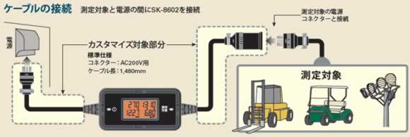 電動フォークリフト、電動カート、屋外照明等の電力測定に! ケーブル、コネクターは測定対象に合わせてカスタマイズ可能! |