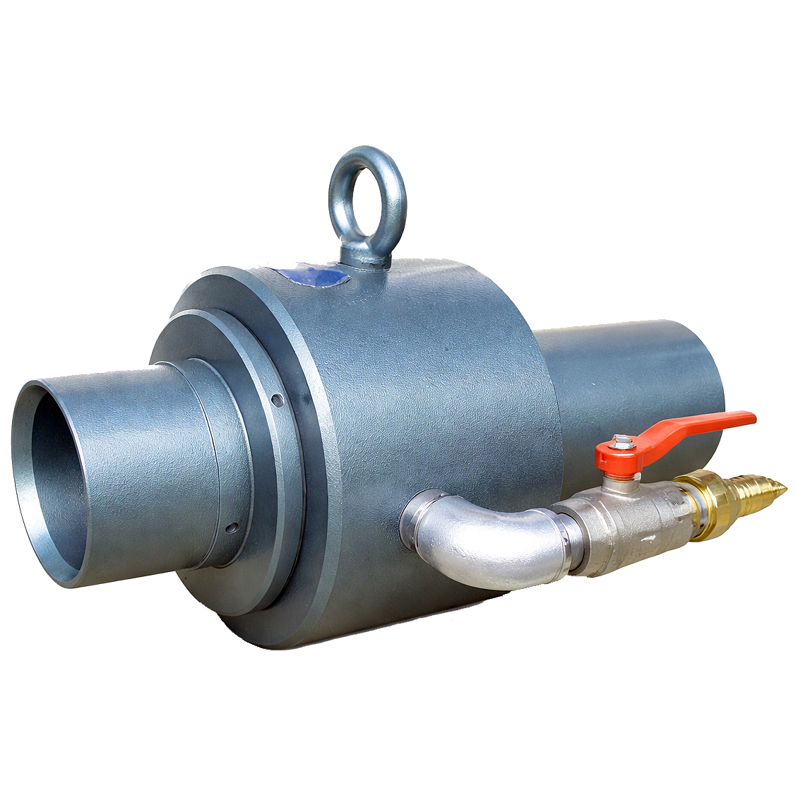 ●繋ぎ方は簡単で径の合ったホースをエアー搬送機の前後に挿し込むのみです。ホースバンドを付けるとより安定します。