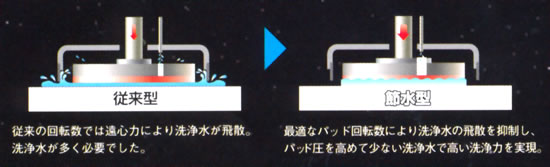 節水機能付で洗浄水の使用量を削減。 1回の洗浄水補給で2時間連続作業を 実現するエコ型洗浄機。 |