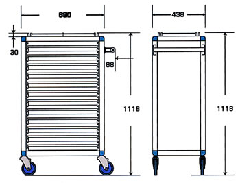●ステンレストレーワゴンの種類によって、また浅型、深型トレーの組合せにより1段あたりの耐荷重は変動します。各トレーの組合せによる耐荷重は以下をご参照ください。