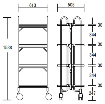 ステンレス折りたたみワゴン パンチング棚板仕様 品番 M488P-2Tシリーズ 廃番 |