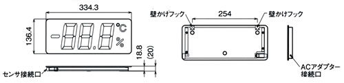 | ■表示器の設置場所の可能性をぐーんと拡げました。 「デカ文字温度計」は、文字高さ100mm基板ユニットを採用し、 ハウジングケースの厚みを20mmと薄型化した、温度表示器です。 本体が薄く軽量なため、従来設置の際、安全面において十分な配慮が必要だった 病院や学校、および事務所、工場、銀行、博物館等にも簡単に設置できます。 ■特長 ●文字高100mmの大きな表示で視認性が抜群。 ![]() ●厚さ18.8mm(突起部除く)の超薄型表示器。設置したときのデザイン性にも優れています。 ![]() ●センサケーブル10mにより表示器本体とセンサをそれぞれ別の場所に設置することができます。 (M503P-300TC-10Sのみ) ■寸法 ![]() ■仕様