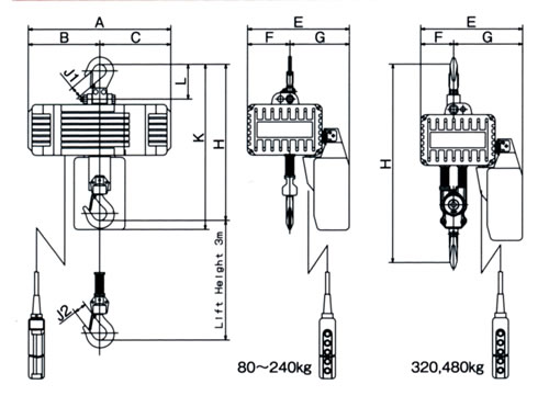 ■仕様 ●上限下限停止:渦巻防止装置 ●保護構造:IP54 ●減速機潤滑:オイルバス ●非常停止装置:電子制御による回路遮断 ●定格:15分(反復定格30%ED) ●ブレーキ:メカニカルブレーキ(フリクションクラッチ一体形) ●モータ過熱保護:サーマルプロテクタ