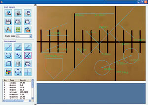 ※45倍時 1mmをモニタ上で45mmで表示 ※350倍時 1mmをモニタ上で350mmで表示 ■オプション計測ソフト ●高機能計測ソフト M511SOFT-PRO メーカー開発の高機能計測ソフト。画像計測以外にも、クロスラインの複数表示、メモリ表示、保存画面との比較、コメント挿入ができます。便利なExcelへのデータ出力機能も装備。 校正用ガラススケール2枚が標準付属しています。