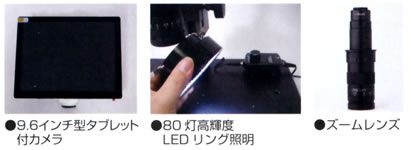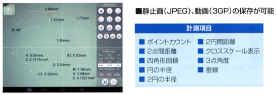 ●アンドロイドタブレットとCマウントカメラが一体化。 ●タブレット上で計測までできるマイクロスコープ ※アンドロイドタブレットとしての機能はサポートの対象外とします。 |