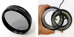 | ■特長 ●USB2.0接続 ●光学6倍比ズームレンズ搭載でトータル倍率20倍~120倍 ●メモリごとにロックするラッチ機能付ズームレンズ ●焦点距離90mm一定 ■Wフィルターでハレーションを大幅軽減 レンズの先端に偏光フィルター、LEDリング照明に偏光フィルターを取り付けることで光を偏光させる(光に特定方向性を持たせる・反射除去)ことができ、観察画像で表面反射やハレーションを軽減できます。 ![]() ■比較画像