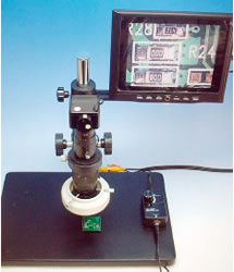 ●40万画素ビデオマイクロスコープ ●ビデオ信号ならではの発色と滑らかな動画を実現。 ●倍率は15〜75倍の連続可変です。(ズームレンズではありません。) |