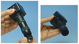 | ■特徴 ●CCD撮像素子の小型・低倍率ビデオマイクロスコープです。 ●テレビモニタのビデオ入力端子つなぐだけで映像が見れます。テレビモニタならではの動画の滑らかさ、発色性ははとても見やすい映像を実現しています。 ●ビデオ機器ならではの豊富な市販周辺機器が使用できます。 ●CCD撮像素子の為、CMOS撮像素子より鮮明な画像が得られます。 ●M511SG40TV-M2Sは、ビデオマイクロスコープ(M511SG40TV-2S)に8.0インチ液晶モニタ・モニタ取り付け固定アングルが付いた商品です。 ●モニタ固定アングルは自由に動かせますのでモニタを好きな位置に移動させる事が可能です。(M511TG40TV-M2Sのみ) ■0.5倍補助レンズを付けた時 最初はx0.5補助レンズがついた状態です。そのままカメラにつなぎます ![]() ■0.5倍補助レンズを外した時 先端についているx0.5補助レンズを外し観察します。 ![]() ■付属品
