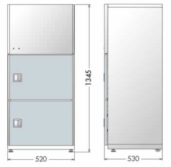 ●扉を閉めると同時に圧縮を開始する簡単操作 ●加圧力が0.48トンながら、面圧が1.2kg/cm2と高いので、小型圧縮機としては抜群の能力を有しています。 ●スタイリッシュなデザインに加え、稼動音が極めて静かなのでどんなオフィスにもマッチします。 ●45・70・90Lのプリペイド袋に対応。 |
